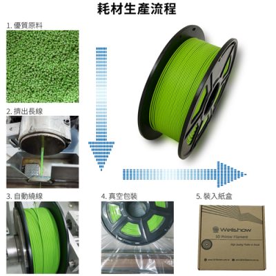 品質穩定可靠 大陸自有工廠製造,先進的生產設備和控管技術,絕不添加次級原料、回收料,提供穩定、高CP值3D列印耗材! 成為官方好友 掃描左方QRcode 或 搜尋官方LINE: @wellshow,即可加入好友。 強大技術團隊售後服務,使用威秀耗材,任何3D列印問題均可於官方LINE提出諮詢。 生產嚴格把關 威秀產品保證不添加任何次級原料、回收料、不良品再製,我們對品質的要求絕不妥協。每一項產品都經過嚴格的檢驗,以確保你收到的是最優質耗材,為你提供卓越的3D列印體驗。許多大陸耗材工廠為了降低成本,偷加次級原料、回收料、不良品再製,容易導致3D列印時出料不穩不均勻等狀況。 淘寶網選購 可直接上威秀淘寶店購買,自行集運回臺灣價格最優惠,臺灣售後團隊提供專業技術服務。點此進入淘寶賣場 客製化服務 尋找一個您理想的完美耗材嗎?威秀工廠提供最先進的3D列印耗材客製化服務!PLA+ 、PETG、PLA+啞光、PETG啞光、絲綢、碳纖維、ABS、ASA、PC等均可配合客戶需要,訂製客製化顏色。歡迎與我們聯絡 官方LINE: @wellshow 威秀耗材適用於市面上99%的FDM3D列印機